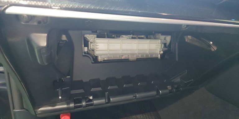 まずはエンジンを止めて助手席のグローブボックスを外します。