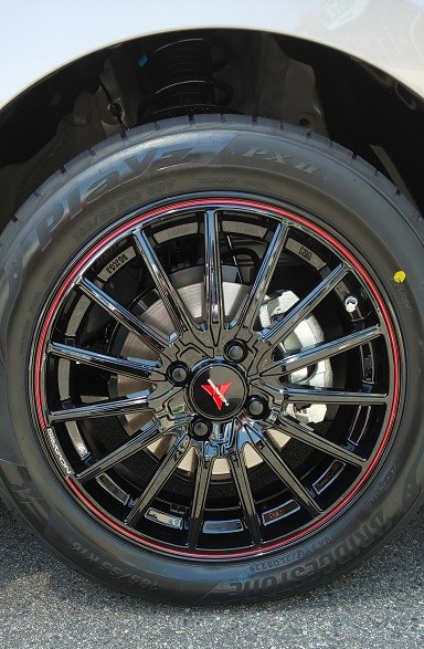 サイドステップのレッドラインとホイールのラインが非常にいいアクセントになり