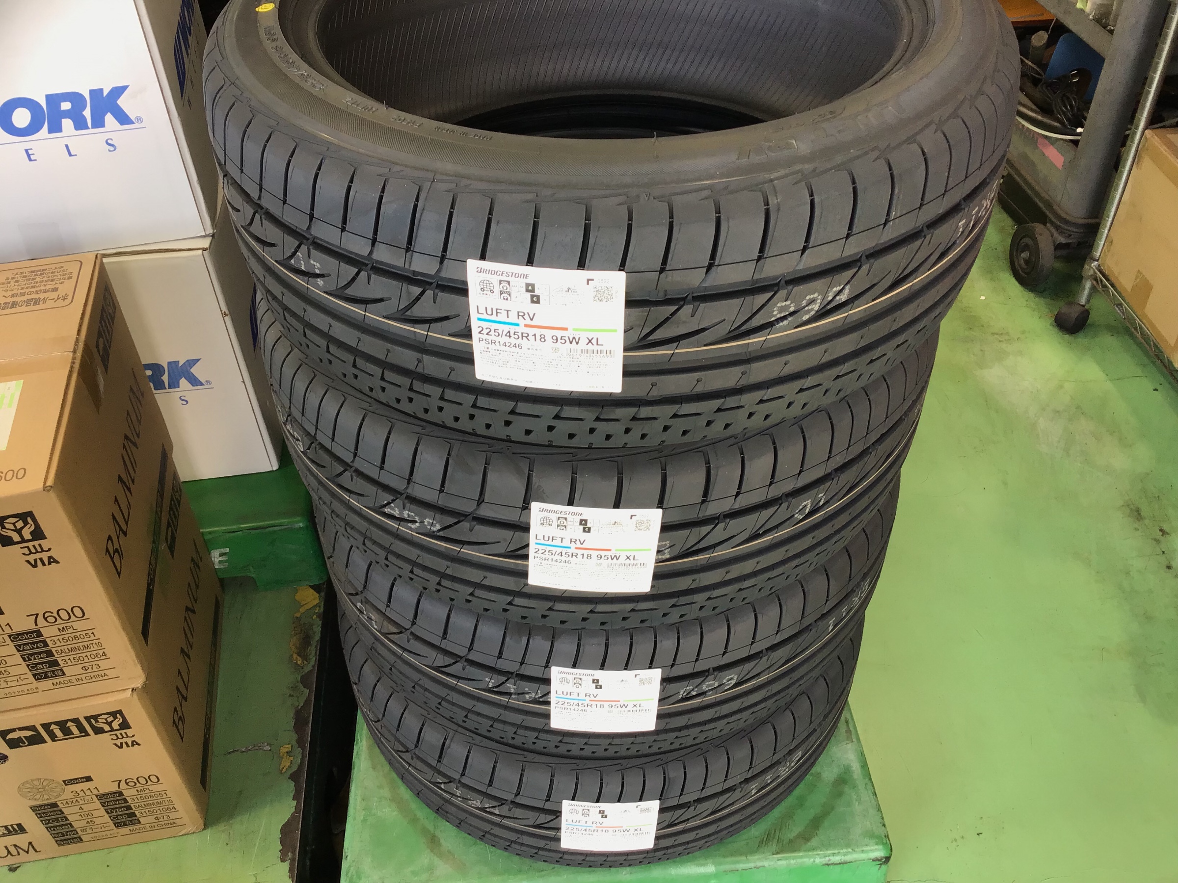 交換するタイヤは【ブリヂストン ルフトRV 225/45R18】です。