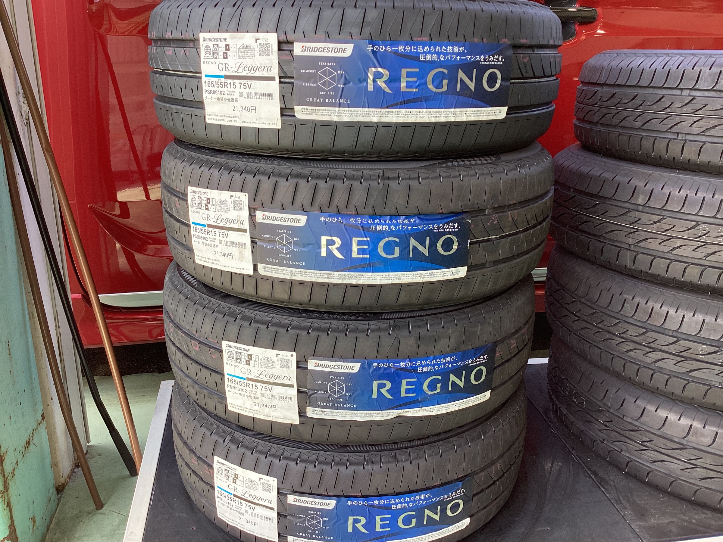 本日のタイヤ交換【ダイハツ ウェイク】 ポスト 2022年9月3日 いつもタイヤ館松原をご利用いただきまして誠に有難うございます。 本日ご紹介させていただきますタイヤ交換は 【ダイハツ ウェイク】 【タイヤ ブリヂストン REGNO GR-Leggera 165/55R15】です 今回お選びいただいたタイヤREGNO GR-Legeraは ウェイクをはじめタント、N-BOX、MOVE、ワゴンRなどの 軽自動車専用設計になっております。 車種によりタイヤにかかる負担は違います。 ブリヂストンは車種ごとにタイヤの設計をすることでタイヤを より安心してより長く使っていただけるよう専用設計のタイヤも製造しています。 こちらの商品はブリヂストンが誇るプレミアムタイヤで 上質な静粛性と優雅な乗り心地が魅力の商品です。 トータルバランスも追及しており快適性能だけではなく 直進安定性・ドライ性能・ウェット性能・低燃費性能と すべての性能を磨き、究極のバランスを追及した レグノだけの走り心地を体感ください。 こちらの商品は家族でのお出かけが多いお車や 車に快適性能を求められる方などに人気の商品です。 車種別専用設計になっておりミニバン・コンパクト・セダンなど 車種に合わせたタイヤをお選びいただけます。 REGNO GR-Leggeraのしっかりとした基本性能・雨天性能、更には静粛性や乗り心地を気に入られて 今回REGNO GR-Leggeraをお選びいただけました! 本日は撮影にご協力いただき誠に有難うございます。 タイヤ館松原ではタイヤのほかにもさまざま商品を取り扱いしています。 無料安全点検実施中!! オイル・バッテリー・ワイパー・エアコンフィルター 汚れ具合チェックします。 お気軽にお問い合わせください。 本日は撮影にご協力いただき誠に有難うございます。 タイヤ館松原ではタイヤのほかにもさまざま商品を取り扱いしています。 無料安全点検実施中!! オイル・バッテリー・ワイパー・エアコンフィルター 汚れ具合チェックします。 お気軽にお問い合わせください。 タイヤ館 松原の電話番号コチラ⇒072-333-5580 -・-・-・-・-・-・-・-・-・-・-・-・-・-・-・-・--・-・-・-・-・-・-・-・-・-・-・--・-・-・-・- タイヤ館松原店は、松原市岡町の国道309号線と府道2号線が交わる丹南交差点の角にございます。 空気圧点検やボンネット内の安全点検など無料で実施しております。 お近くにお寄りの際は是非お立ち寄りください。 また、新型コロナウイルス感染症防止の為、WEBや電話でのご相談も随時受け付けておりますので お電話でのお問い合わせもご活用頂けます様、よろしくお願いいたします。 カテゴリ:タイヤ関連 タイヤ関連
