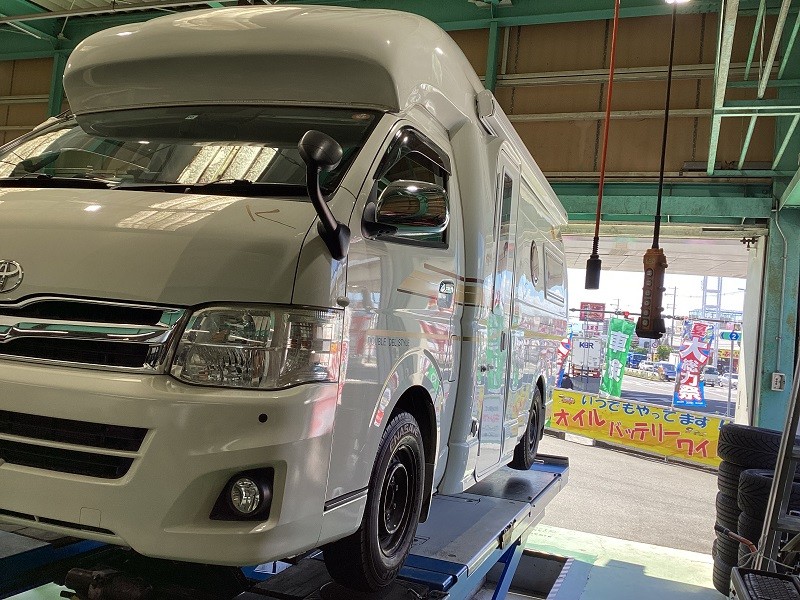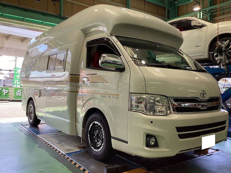 【 トヨタ:ハイエースキャンパー 】 タイヤ・ホイール交換・アライメント調整おまかせください!!