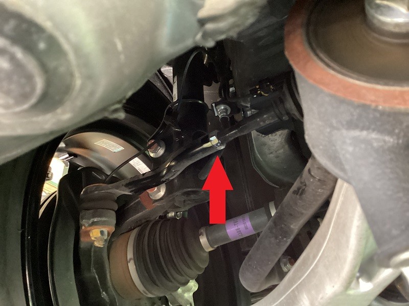 フロントはタイロッドエンドでの調整(矢印の場所)