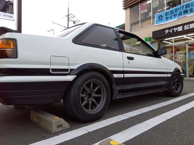 トヨタ AE86に「ワタナベ エイトスポーク」の取付です。