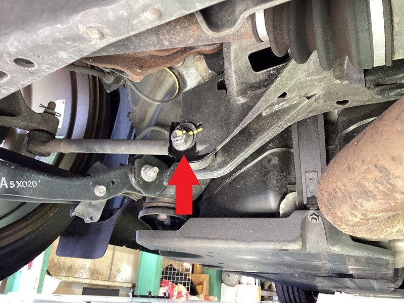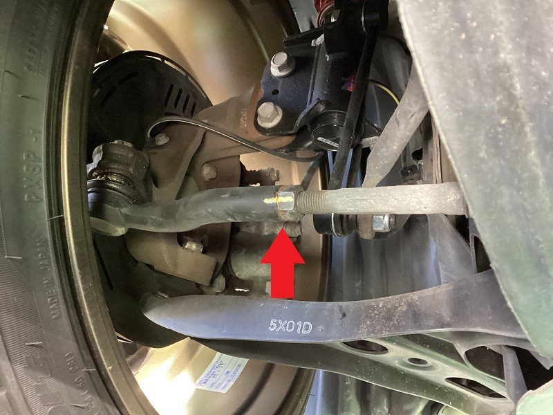 フロントはタイロッドエンドでの調整(矢印の場所)