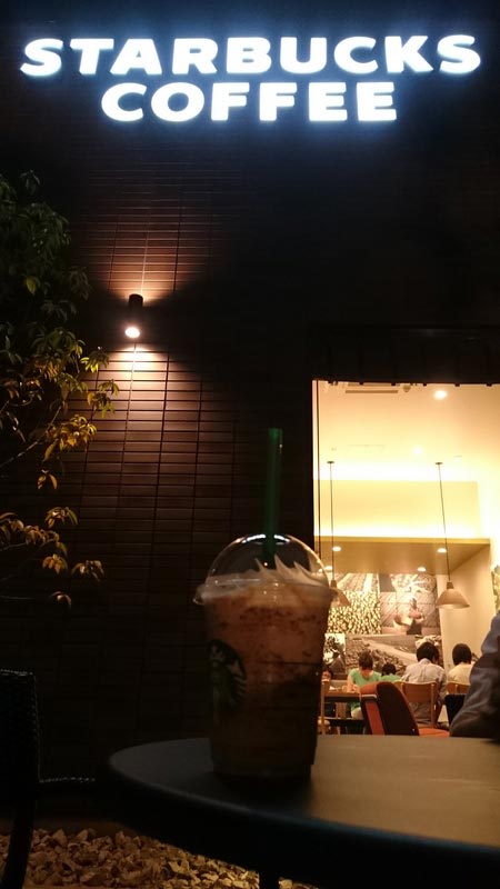 自然豊かなところに突如できたスタバは、夜にもかかわらず、沢山のお客さんが…