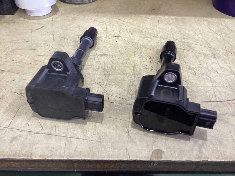 左がノーマルと右がハイスパークイグニッションコイルを見比べてみると、