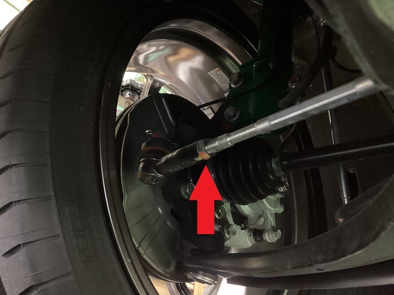 フロントはタイロッドエンドでの調整(矢印の場所)