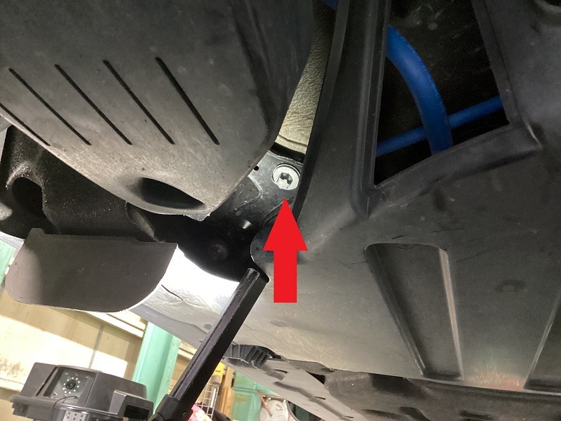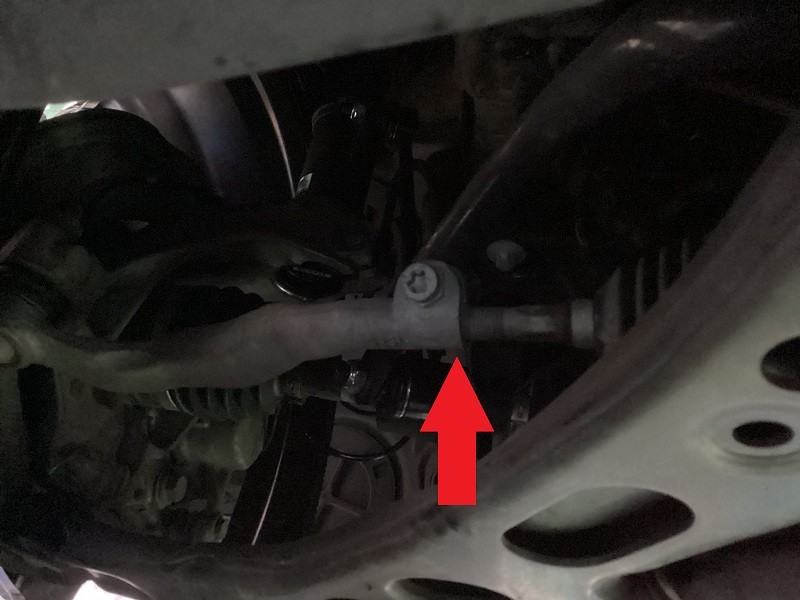 フロントはタイロッドエンドでの調整(矢印の場所)