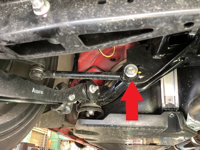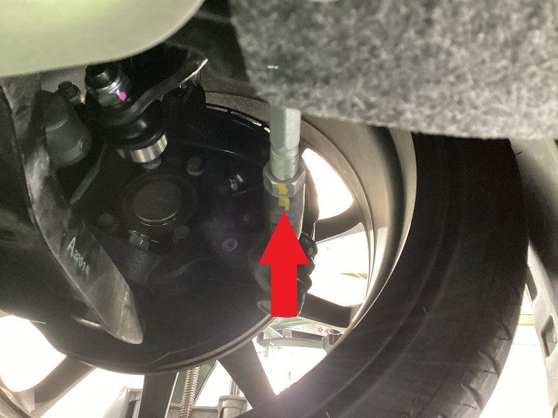 フロントはタイロッドエンドでの調整(矢印の場所)