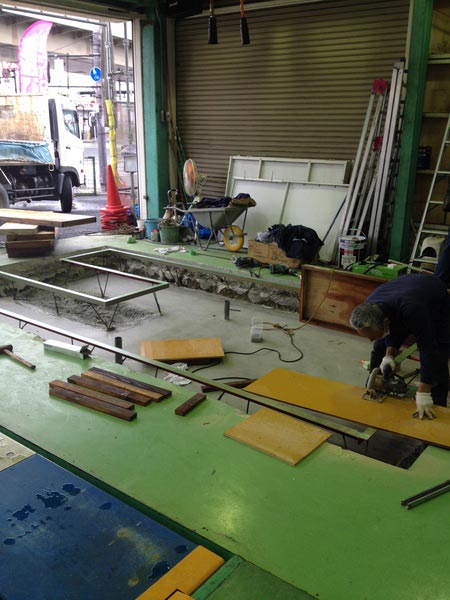 重機を持ち込んでの作業で、以前のリフトを瞬く間に撤去した後、
