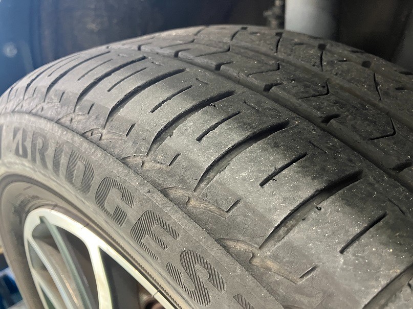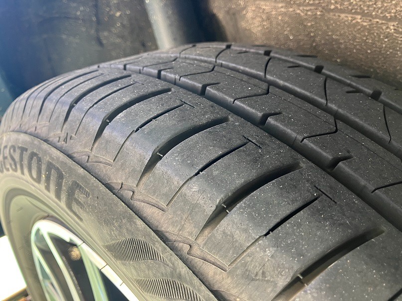 写真のような摩耗の差がある場合はタイヤのローテーションをオススメしております!