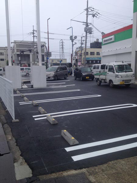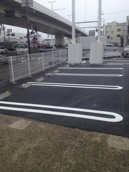 アスファルトを引いて、ビシッと白線を引いて