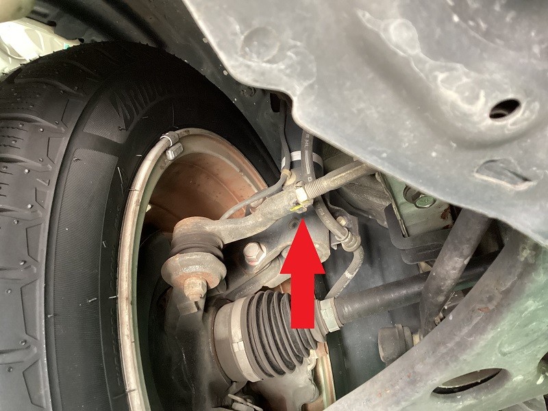 フロントはタイロッドエンドでの調整(矢印の場所)
