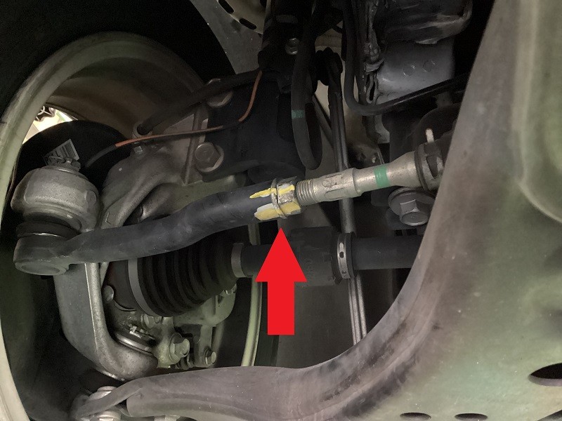 フロントはタイロッドエンドでの調整(矢印の場所)