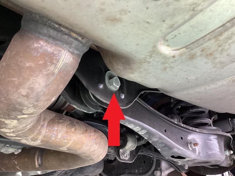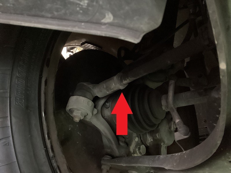 フロントはタイロッドエンドでの調整(矢印の場所)