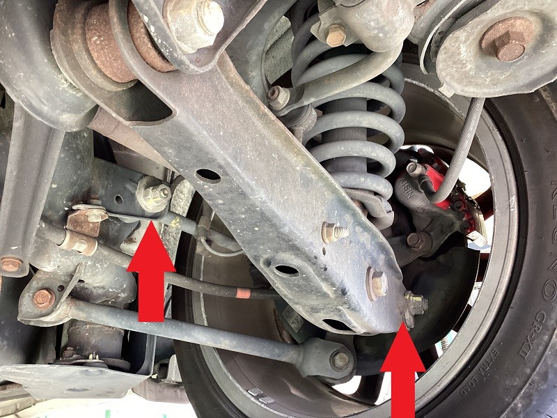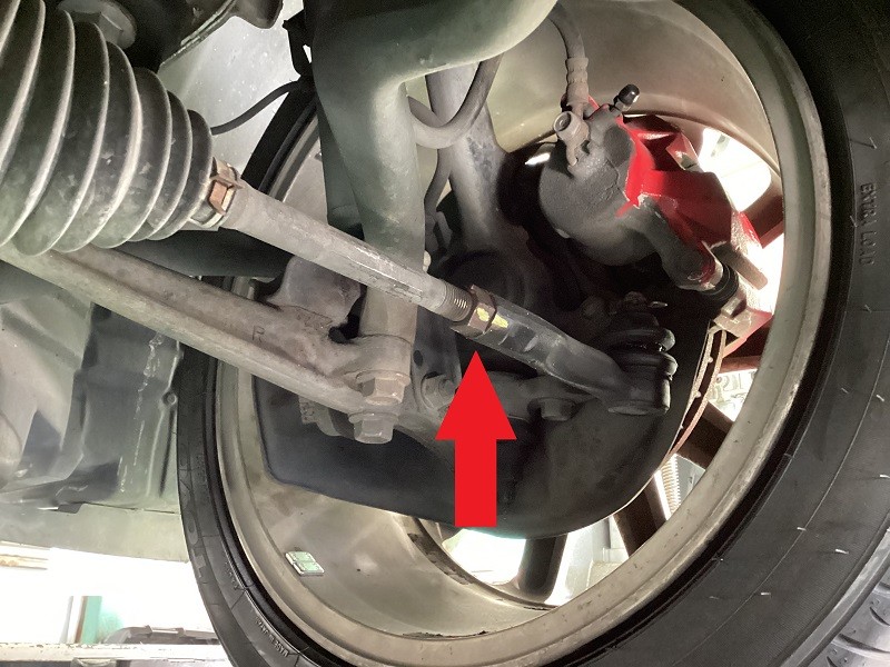 フロントはタイロッドエンドでの調整(矢印の場所)
