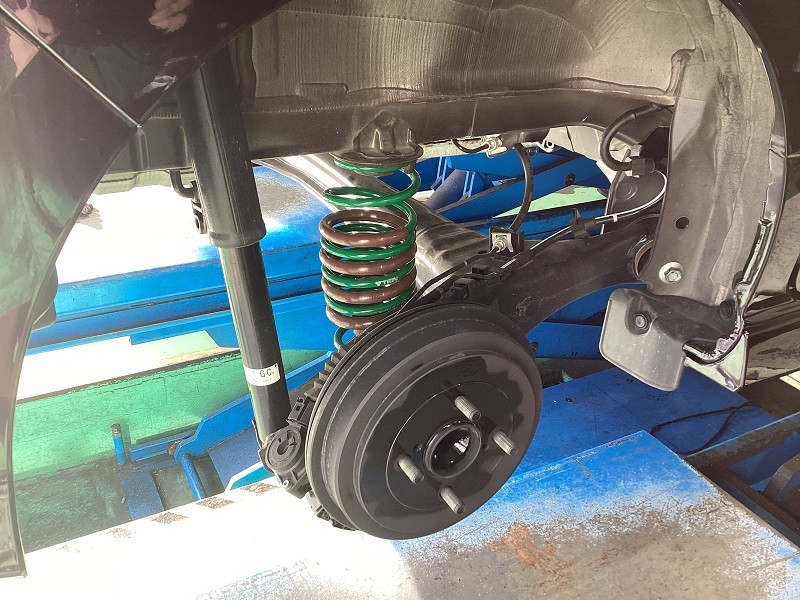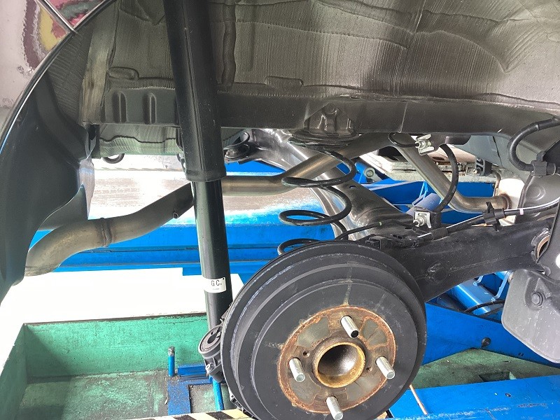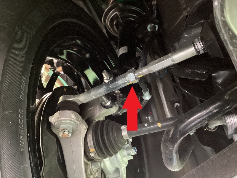 フロントはタイロッドエンドでの調整(矢印の場所)