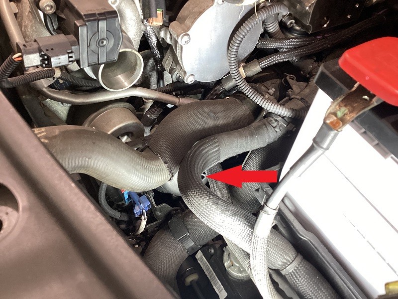 やっと見えましたが、ホース類をかき分けて交換です!!