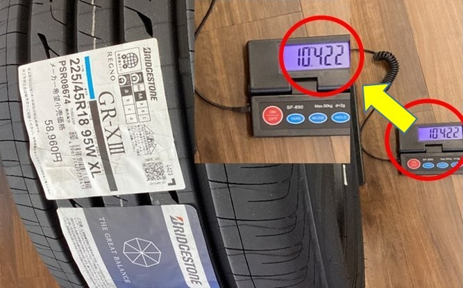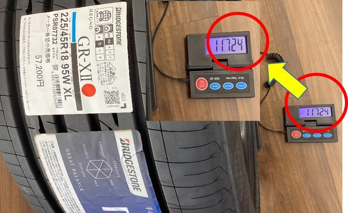 REGNO GR-XⅡと 新商品 GR-XⅢを比べてみました ポスト 2024年3月28日 今回は「 祝!REGNO 新商品発売!」ということで REGNO【GR-XⅡ】と【GR-XⅢ】 旧 新 を(勝手に)くらべてみました! ※ といっても試乗をした訳ではございません・・・ 今後GR-XⅡはお求めいただけなくなってしまいます。 (サイズによりますが) 今回、当店に同サイズの新旧REGNOが ありましたので比べてみました。 あくまで現物を外観上の個人的感想と させていただきますのでご了承下さい。 詳しい商品説明はメーカーHPにお任せします。 リンクありますので是非検索してください! それではまいりましょう! 【REGNO GR-XⅡ】↑ 写真 左 ・新品時・摩耗時ともに上質な静粛性を実現 ・優雅な乗り心地と応答性の良いハンドリングを両立 ・低燃費・ライフ・ウェット性能を高次元でバランス メーカーサイトはコチラをクリック → 【REGNO GR-XⅢ】 ↑ 写真 右 ・レグノサイレントテクノロジーにより、 深みを増した空間品質を実現 ・磨き抜かれた走行性能 ・高次元のウェット性能を実現 といった特徴のタイヤです! 言わずと知れたREGNO 新次元の快適さを求めたい方におすすめです。 もちろん静粛性、低燃費性能は 高次元で両立させたタイヤです! ですので、安全・安心を求めたい方、 大切な人を愛車に乗せる方に おすすめのタイヤです。 1本の重さを量ってみました! 同サイズ比較で、GR-XⅡよりGR-XⅢが少し軽い様です. (接地状況による誤差がありますのであくまでも参考程度に) 新型REGNOはいろいろ進化している! 低燃費ラベル 225/45R18の場合 〇(赤丸)に注目! ウエットグリップ性能が ” b ” → ” a ” に向上しています。 より雨の日の安心感が上がりました! もちろん安全に走行するという点では どちらもGOODです。 溝の深さを測ってみました! GR-XⅡのタイヤ中心の溝 7.8mm GR-XⅢのタイヤ中心の溝 7.8mm 溝の深さは両モデルとも同じでした。 個人的な感想としては・・・ 〇 走行したら滑らかさが向上! 「乗り心地」が更によさそうな感じ。 〇 今までのREGNOシリーズも 交換後の点検で感想を伺うと 「タイヤの良さが体感できました。」 といったお話もいただけていました。 今回、更に進化したモデルだと さらに良さがあると思います。 等々、ぜひ新しいREGNOをご購入いただき、 走行後の100km点検時に感想を聞かせて下さい。 タイヤ館松原店は、 松原市岡町の国道309号線と府道2号線が交わる丹南交差点の角にございます。 空気圧点検やボンネット内の安全点検など無料で実施しております。 お近くにお寄りの際は是非お立ち寄りください。 タイヤが最大20,000円引きが出来る!!プレムアムセール開催中!! 本日最終日!!ですよ。 電話でのご相談も随時受け付けております、お気軽にご相談ください。