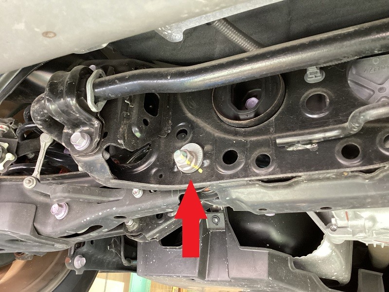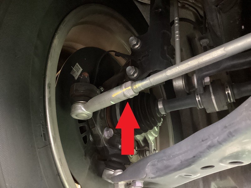 フロントはタイロッドエンドでの調整(矢印の場所)