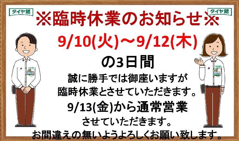 明日 10(火)~12(木)は臨時休業とさせていただきます。