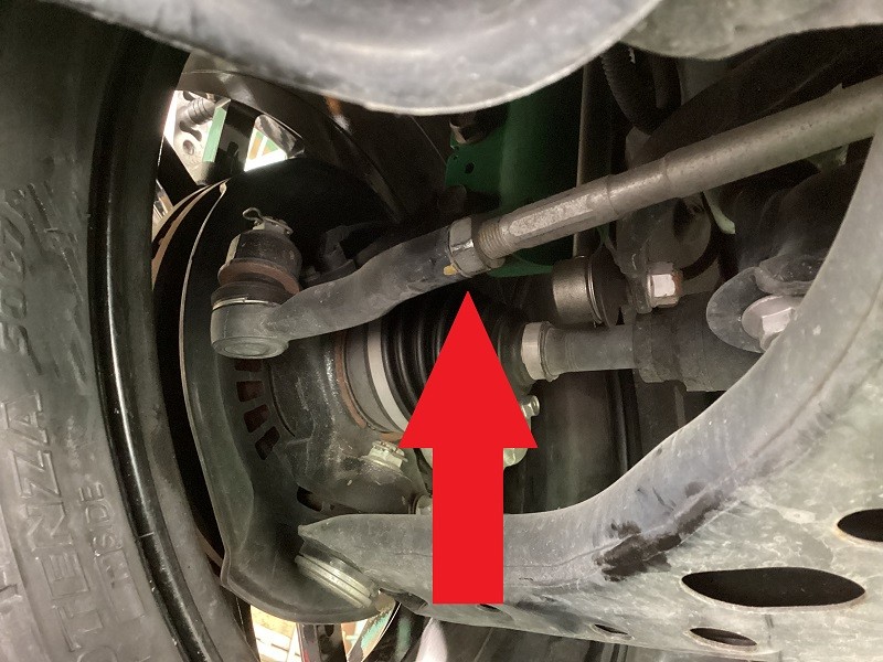 フロントはタイロッドエンドでの調整(矢印の場所)
