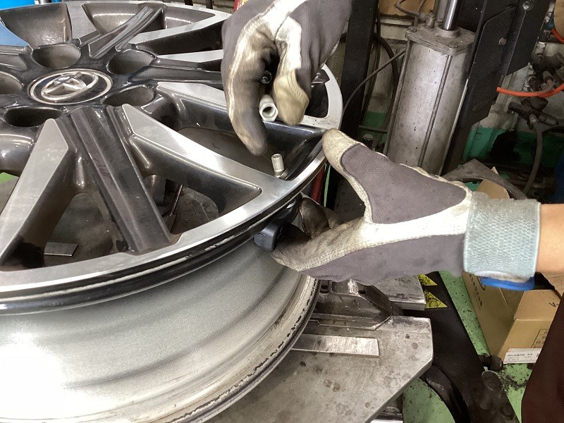 タイヤ交換中、交換時期になっておりTPMS(空気圧センサー)の