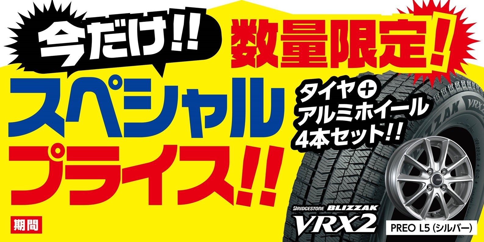 今だけ期間限定!!スペシャルプライス!!BLIZZAK VRX2ホイールセット!!
