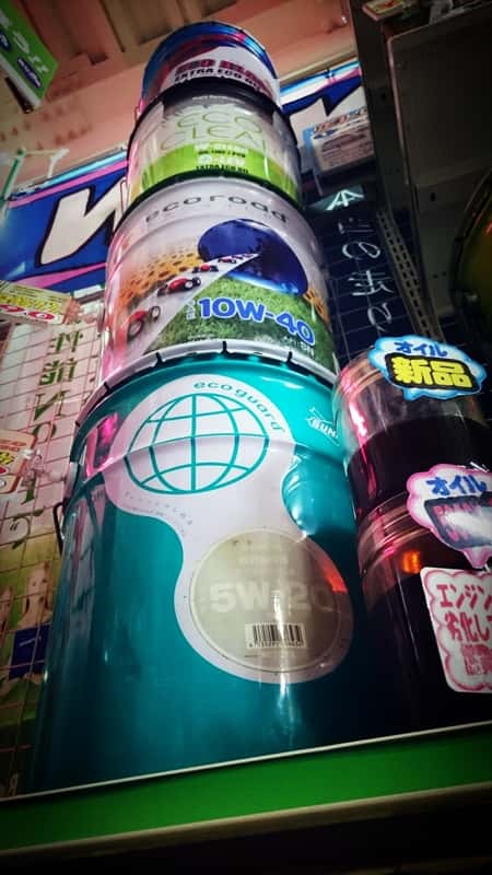 タイヤ館松原でも、オイルコーナーに不気味なタワーが出現しました。