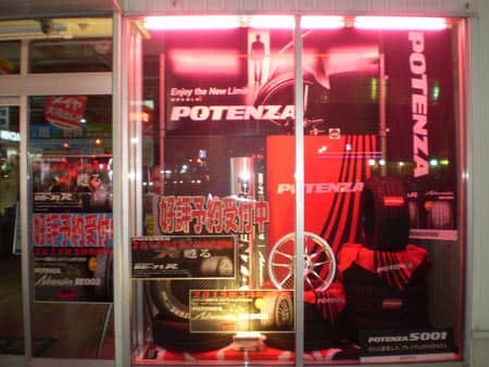 夜のタイヤ館松原は、現在こんな感じで夜の薄明かりを照らしております…。