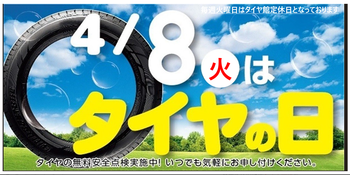 タイヤ業界では、2000年に「4月8日タイヤの日」を創設しました。春の全国交通安全運動が実施される4月、輪(タイヤ)のイメージから8をとり、4月8日をタイヤの日と定めたものです。