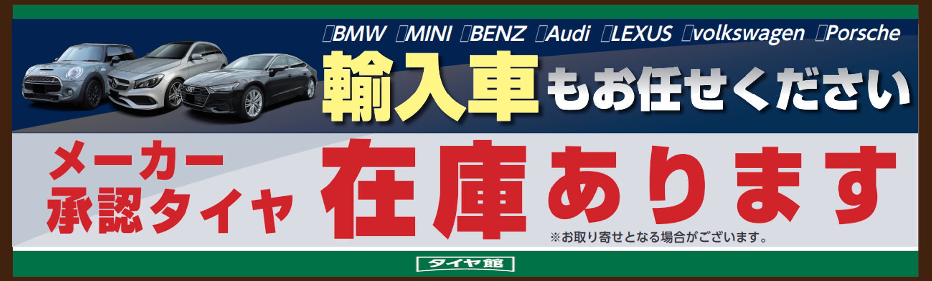 輸入車のタイヤ交換となると、「交換できるお店が少ない」「タイヤの在庫がない」等