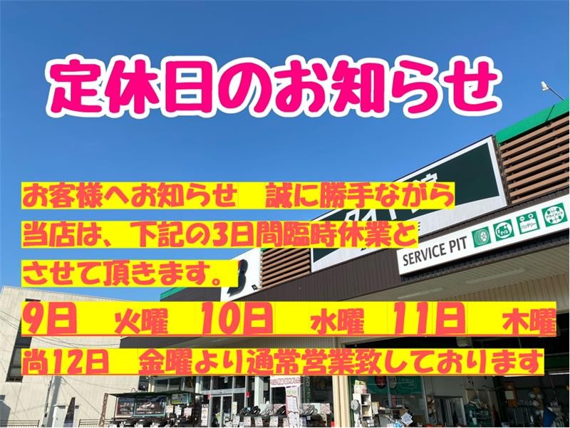 ご注意ください!9/9(火)~9/11(木)は定休日となります!お店が休みでもWEBでタイヤ購入・作業や相談のご予約を承っております♪