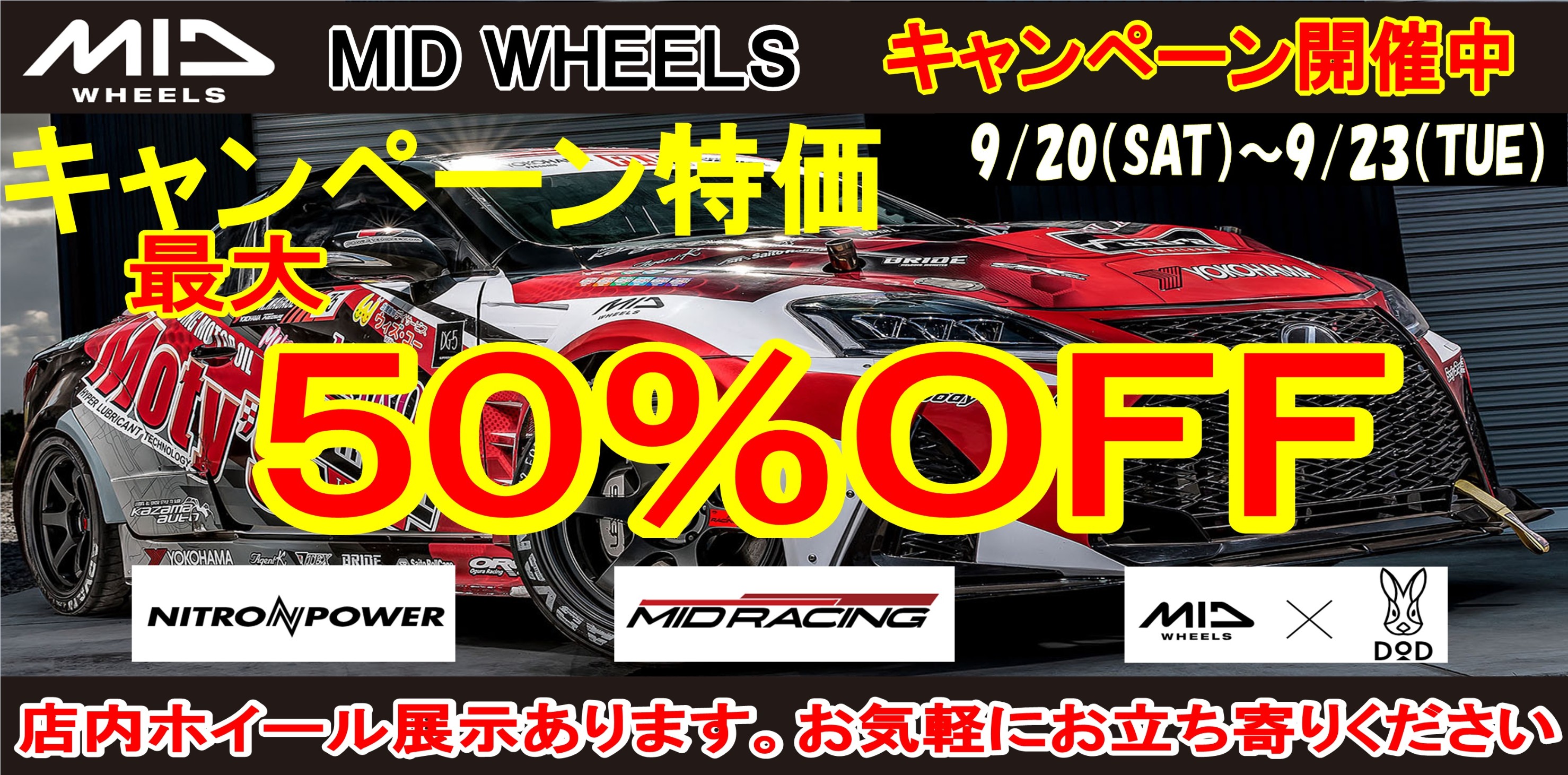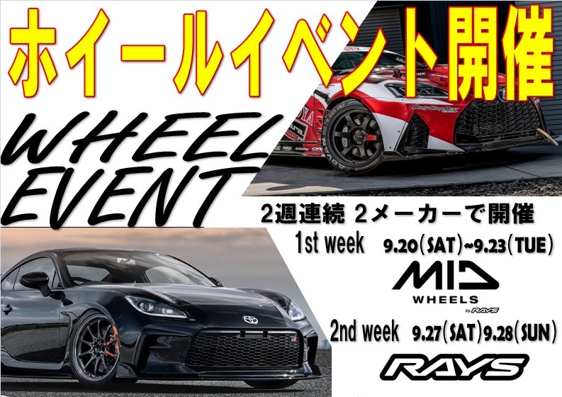 緊急開催決定!2週連続ホイールイベント「MIDホイール&RAYS(レイズ)」9/20~