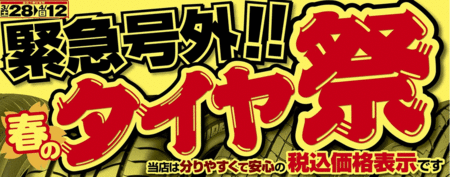 3月28日(土)より、春に向けてのセール第3弾『タイヤ祭』を開催いたします!