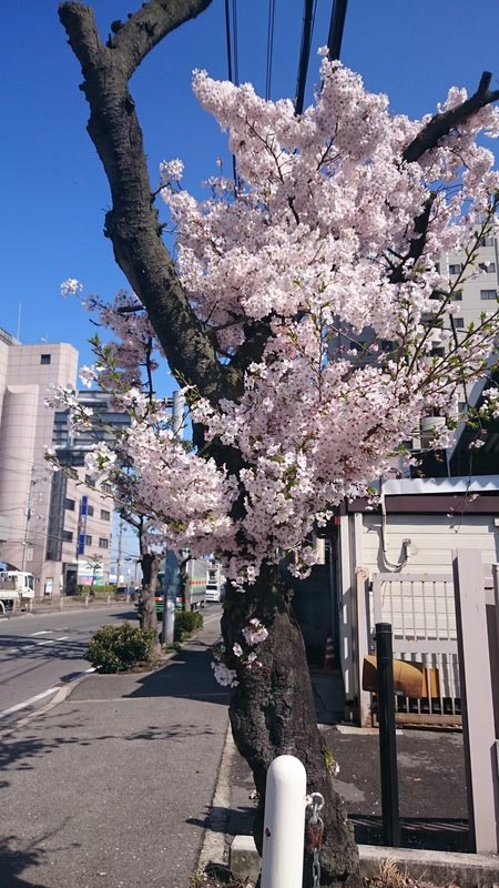 タイヤ館松原のすぐ隣に植わっている桜も咲いていました!