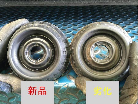 アッパーマウントは経年劣化により押しつぶされて変形し劣化してきます。(約5年又は5万kmぐらい)