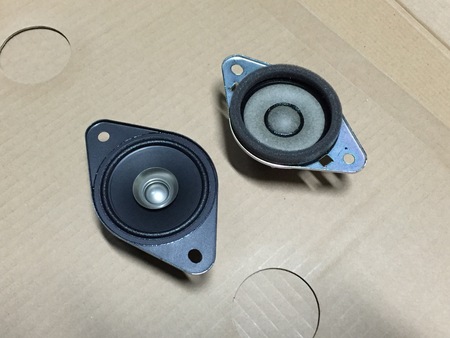 純正のペラペラなスピーカーに比べてズッシリとした重厚感のあるスピーカーです!