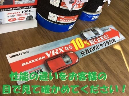 このコーナーではお客様にスタッドレスタイヤに見て・触って・体感していただける