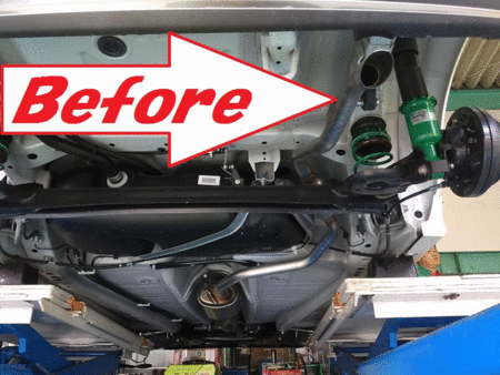 写真の通り、ピッカピカのオールステンレスマフラーと車高調の装着完了デス♪♪