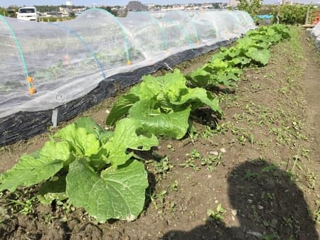 1枚目の写真では白菜がスクスクと育っています♪ものすごく順調です!
