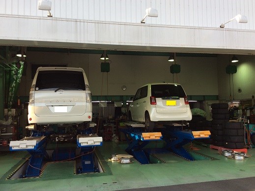 今日は朝一番からタイヤ交換、アライメント、オイル交換、メンテナンスなど、