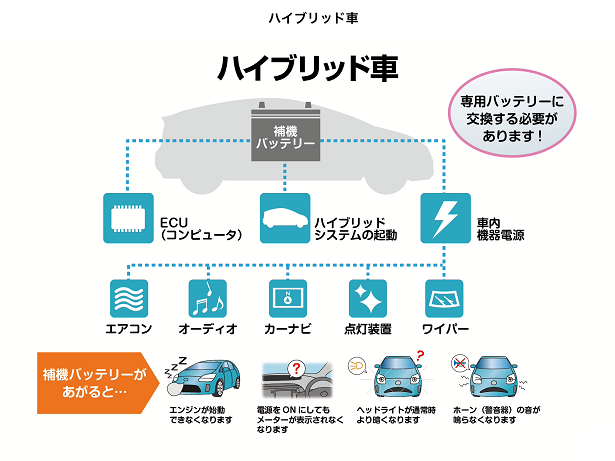だからハイブリッドカー専用のバッテリーを装着する必要があります!