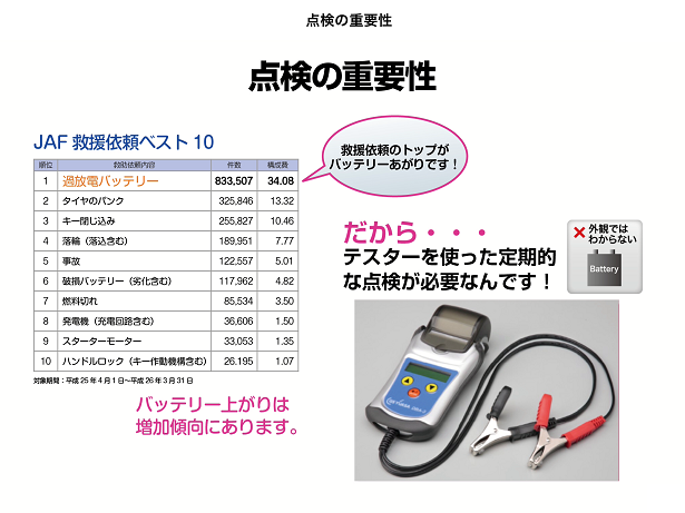 バッテリーはほとんどが見た目で劣化しているかどうかの判断ができないので、