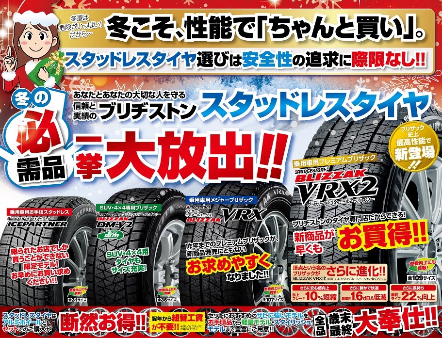 ブリヂストンの夏用タイヤ、冬用タイヤの売りつくしセール!