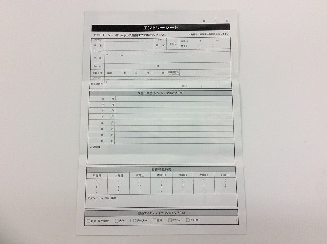 店頭に置いてあるパンフレットがエントリーシートになっております!