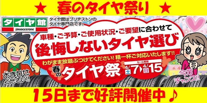 本日 7日より【 春のタイヤ祭り 】がスタートしました♪
