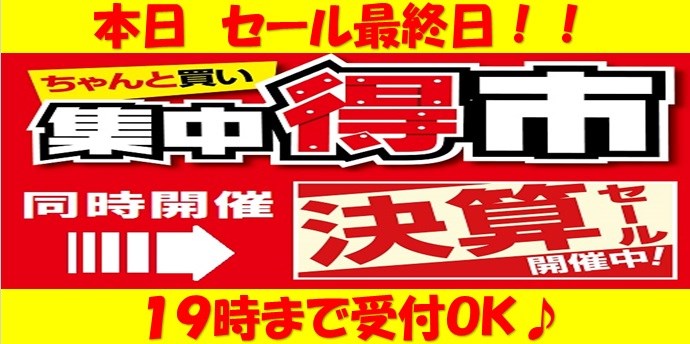 セール最終日!! ポスト 2018年7月1日 いつもタイヤ館 松原のホームページをご覧いただきありがとうございます! いよいよ本日、7月1日で 【 集中得市セール&決算セール 】が最終日となりました! まだご来店いただいていない方はこの機会に是非お立ち寄りください★ お買い得商品は最後の最後まで取り揃えております! お見逃し無く!! 【 WEB専用チラシ 】←コチラをクリックして是非ご覧下さい♪