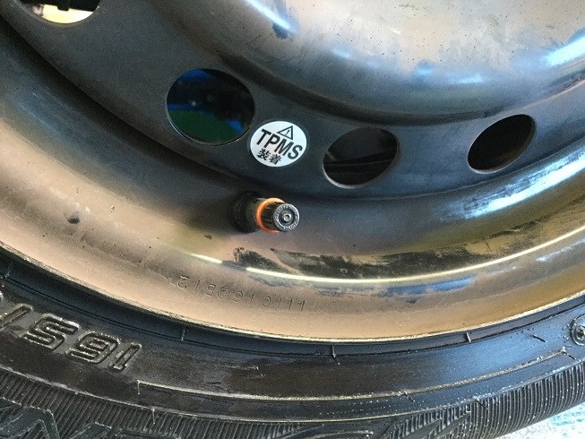 こちらはスチールホイール対応のゴム製のセンサーを取り付けしました。