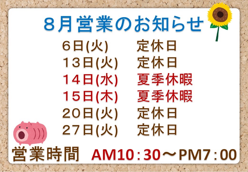 14日(水)・15日(木)を夏季休暇とさせていただきます!